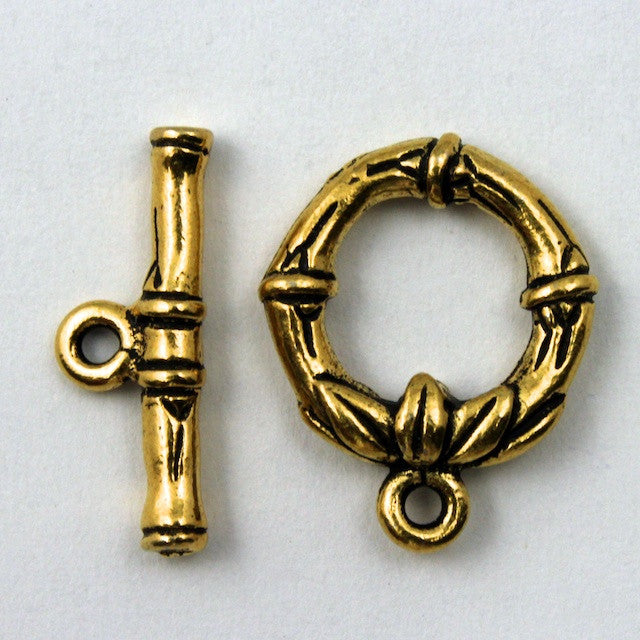 14mm antique gold toggle clasp set of ring and bar with bamboo decoration.