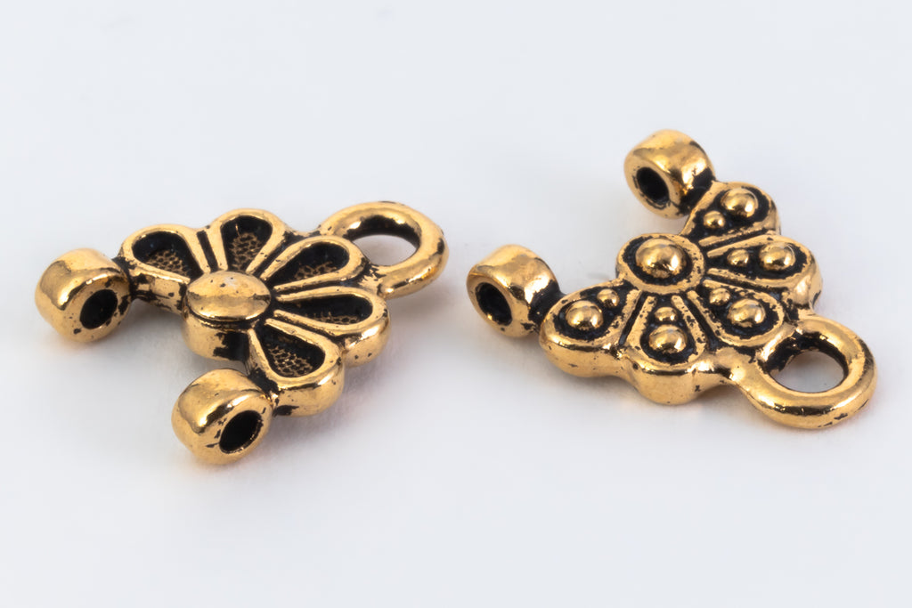14.3mm x 11.6mm "Oasis" style stitch-in link with 2 perpendicular loops to accommodate beadwork on one side and a simple loop on the other.