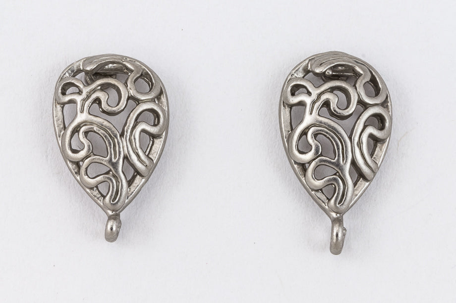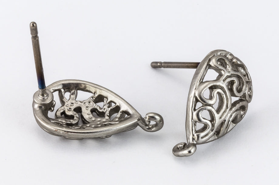 14mm filigree teardrop with 21 gauge surgical steel post on back and open 2mm loop.