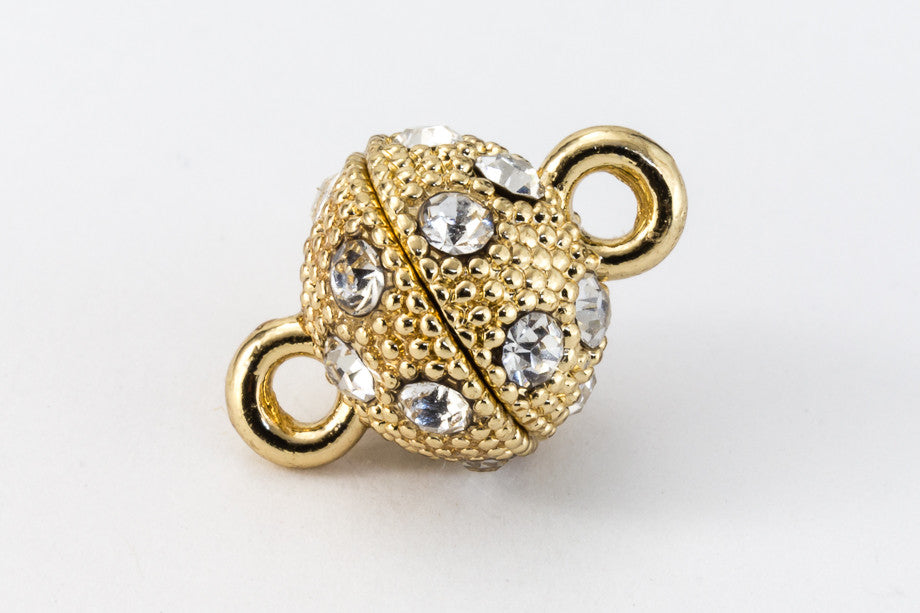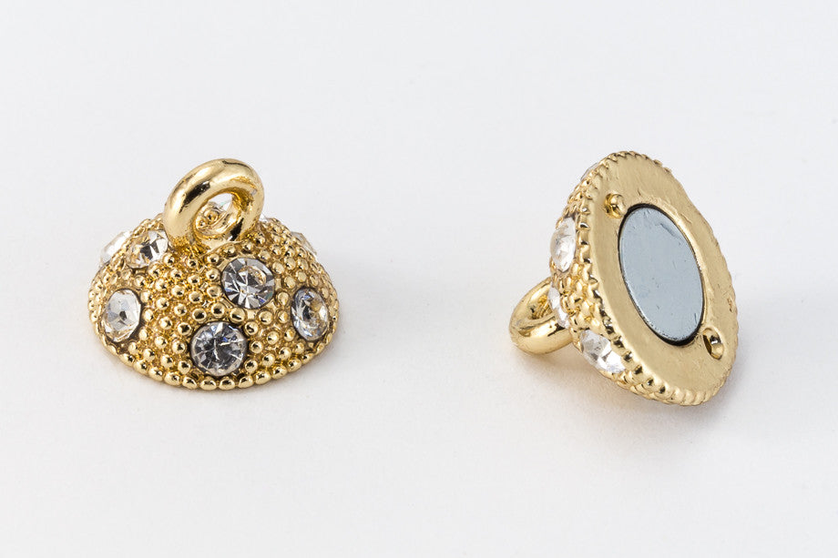 Nickel-free bright gold plating over brass with beaded texture and scattered crystals.
