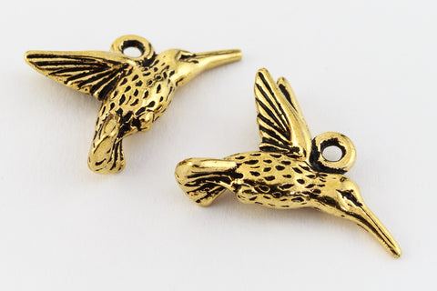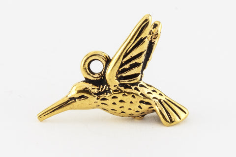 14mm x 19mm antique gold hummingbird charm with 1.25mm loop.
