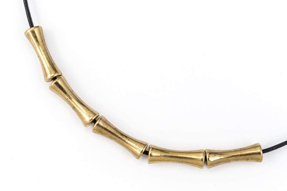 14mm x 5mm antique gold tube bead with flared ends.