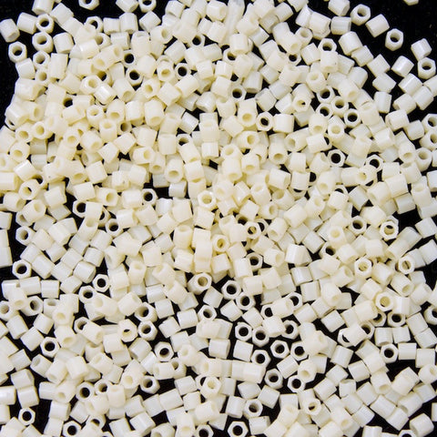 1mm x 1.4mm size 15/0 opaque oatmeal hex seed bead.