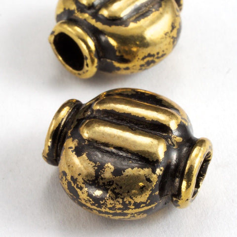 15mm antique gold lantern shape bead with 4.5mm hole.