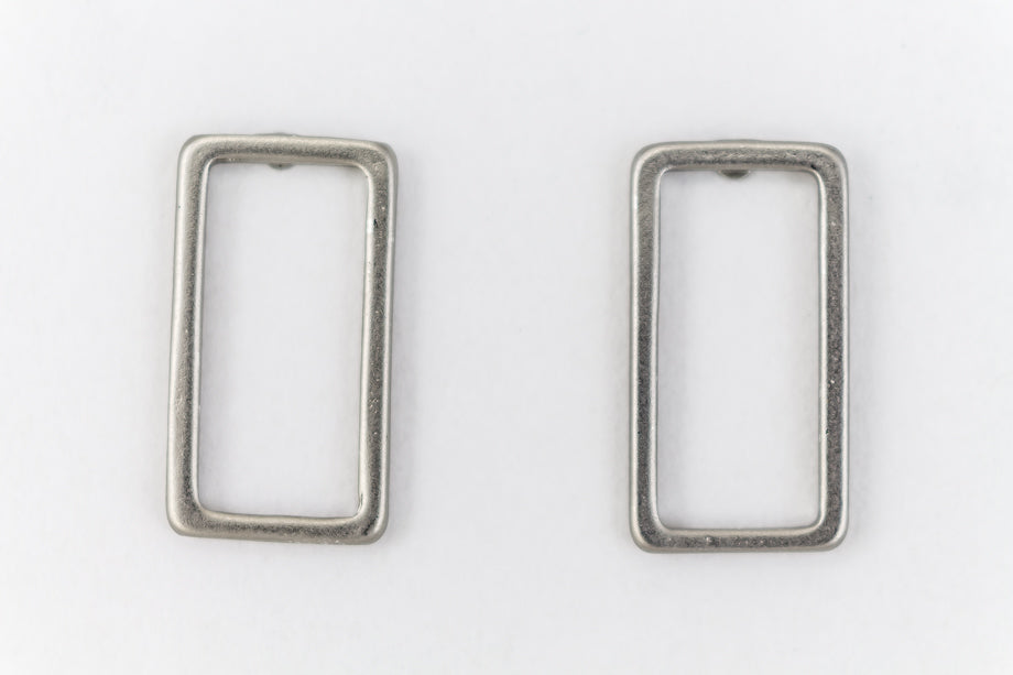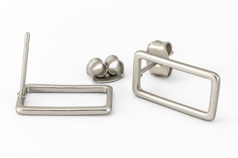 15mm x 8mm open rectangle with 21 gauge surgical steel post on back.