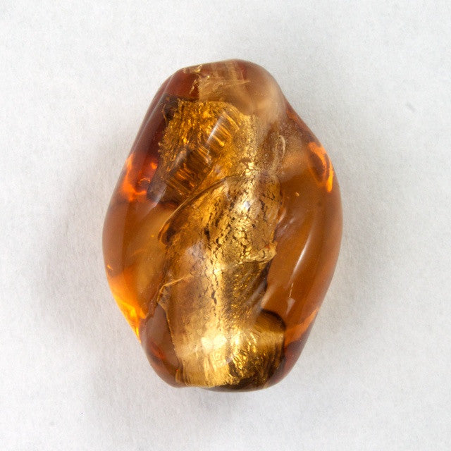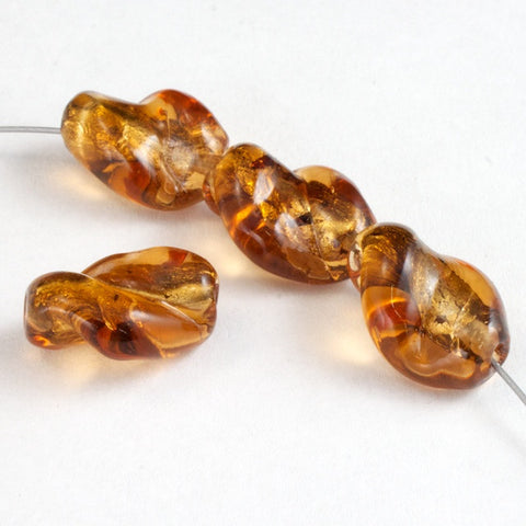 10mm x 15mm smoked topaz twisted flat oval glass bead with silver foil lining.