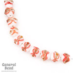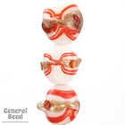 12mm x 15mm opaque white round bead with red and gold Baroque style decoration and 0.5mm hole.
