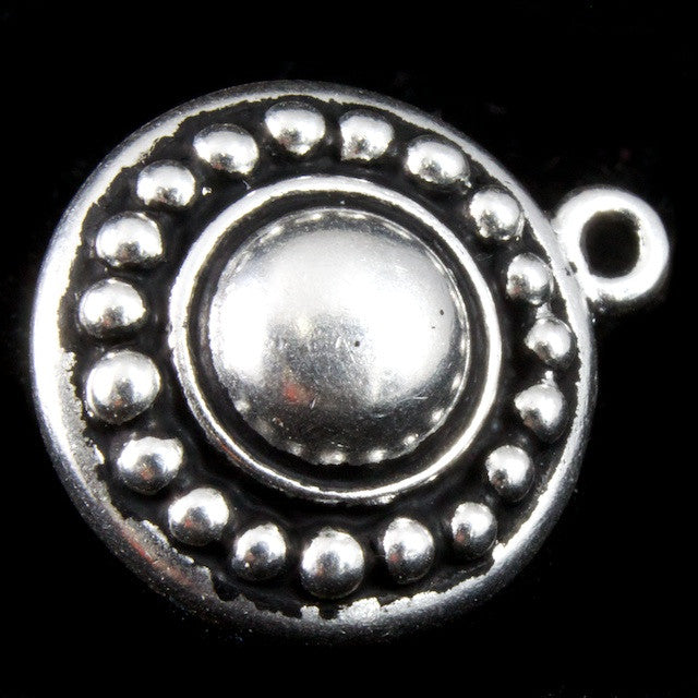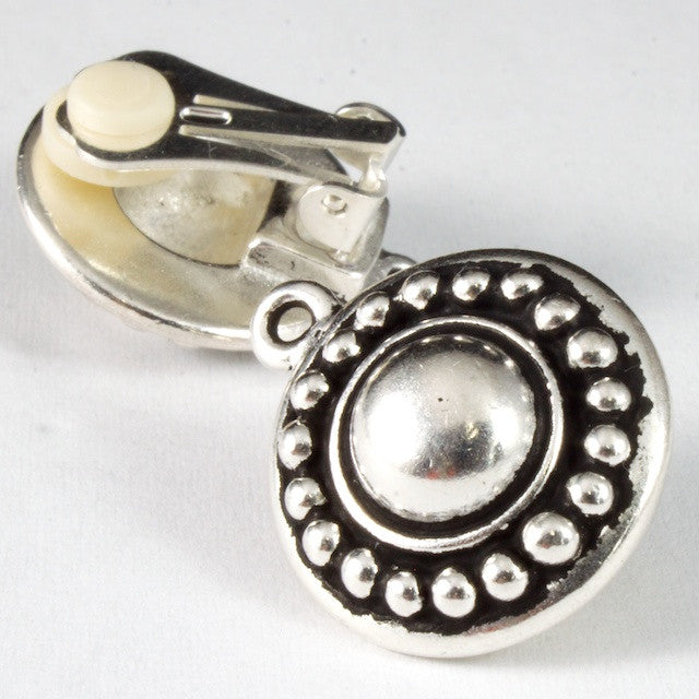 Current manufacture. 16mm antique silver beaded clip- on earring.