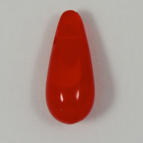 7mm x 16mm red opal glass teardrop bead with hole through top.