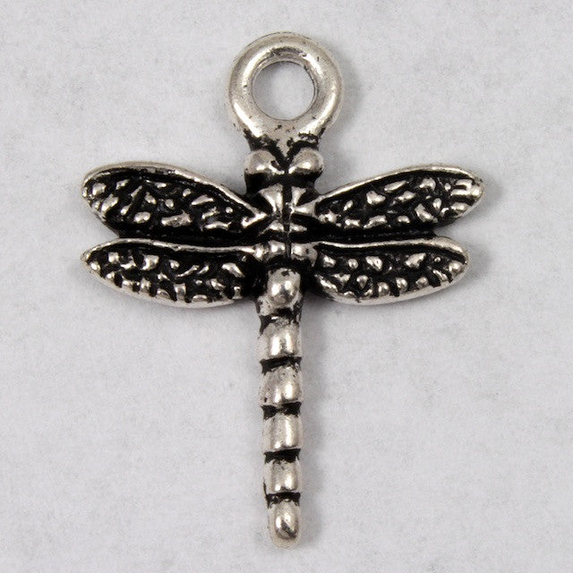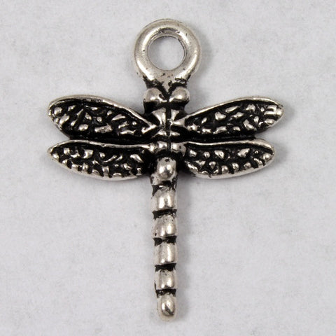 16mm x 20mm antique silver dragonfly charm with detail on both sides.