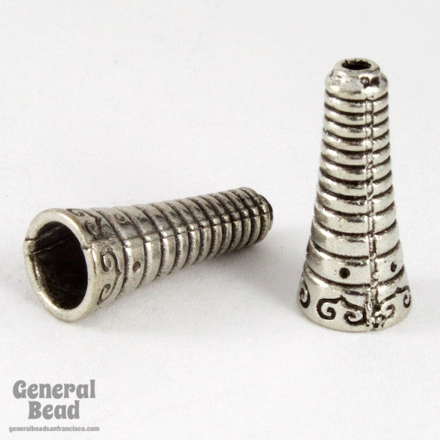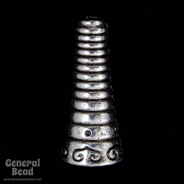 7mm x 17mm striped texture cone with antique silver plating.