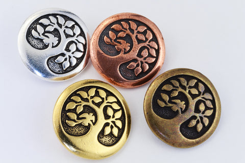 17mm antique silver round pewter button with embossed detail of a bird sitting in a tree.