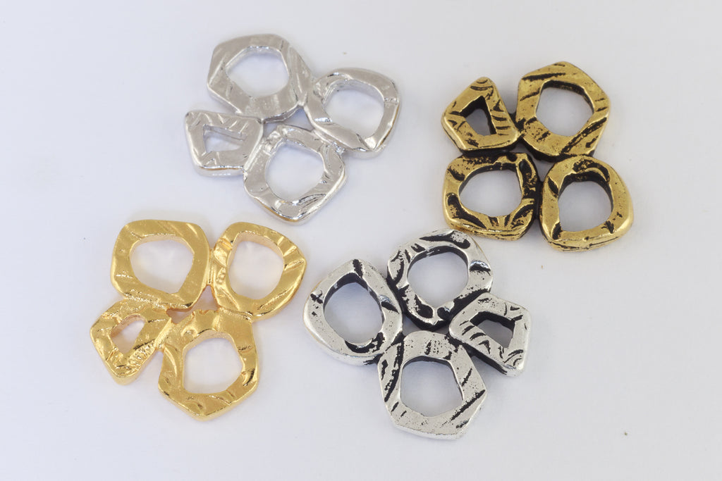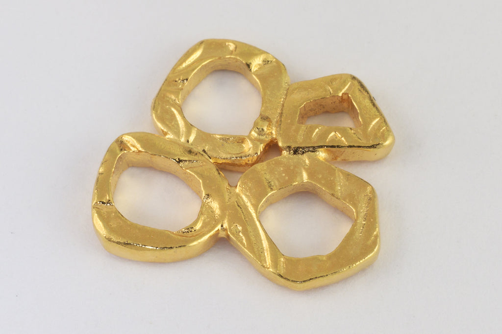 16.8mm x 15.3mm bright gold link made from four irregular rings grouped together.