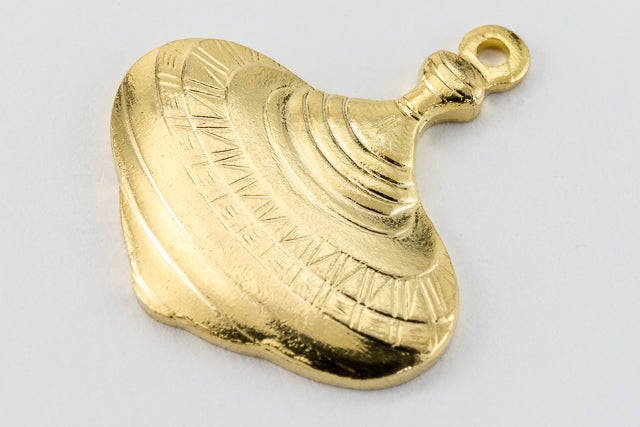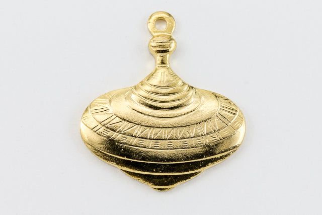 17mm gold tone detailed Spinning Top toy with loop at top.