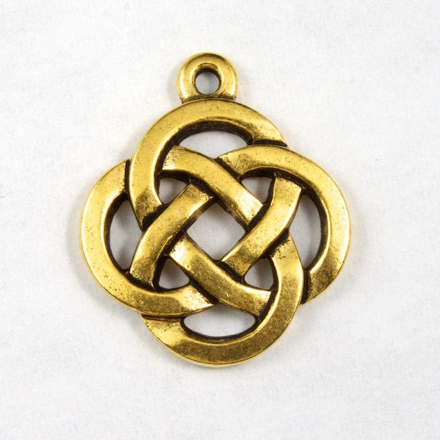 17mm x 20mm antique gold open Celtic knot pendant. Inner diameter of loop 1.25mm.