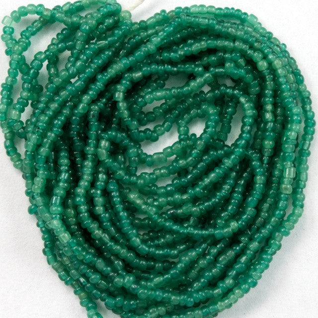 Size 18/0 medium grass green antique Venetian glass micro seed beads.