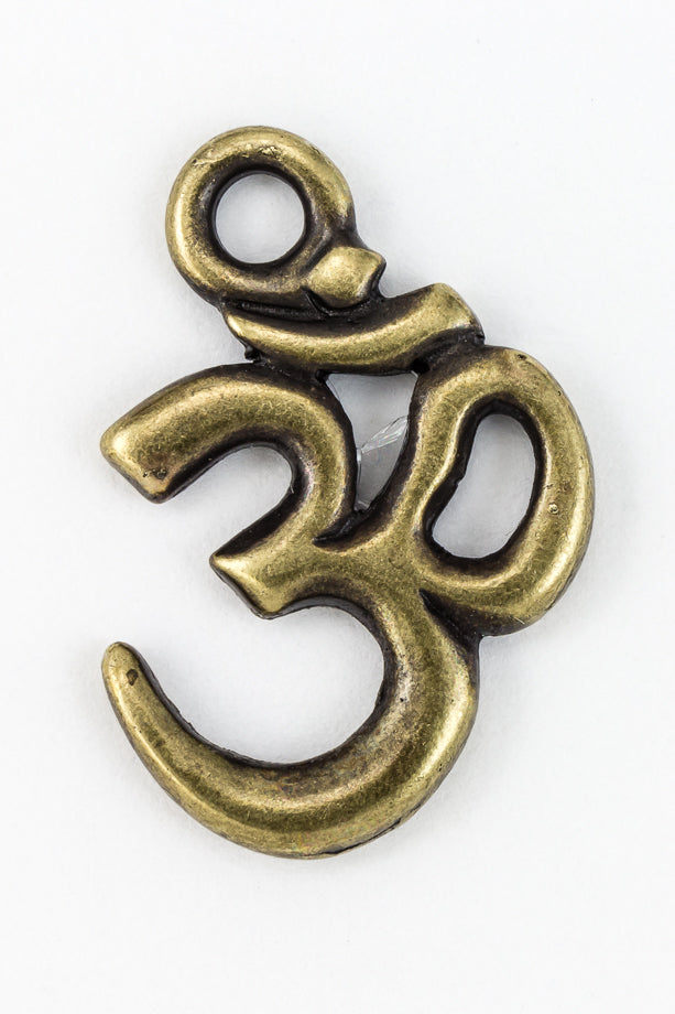 18.25mm x 14mm antique brass "Om" symbol with loop at top.