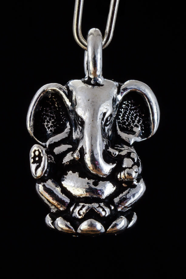 Dimensional figure of the Hindu elephant-headed deity Ganesh seated on lotus flower.