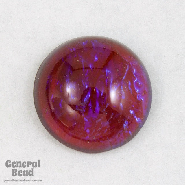 18mm round dragon's breath opal glass cabochon with brilliant flashes of purple.