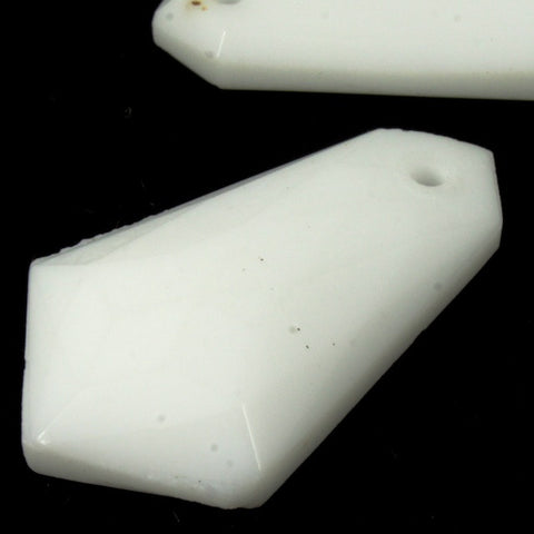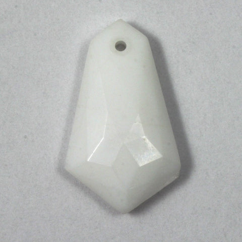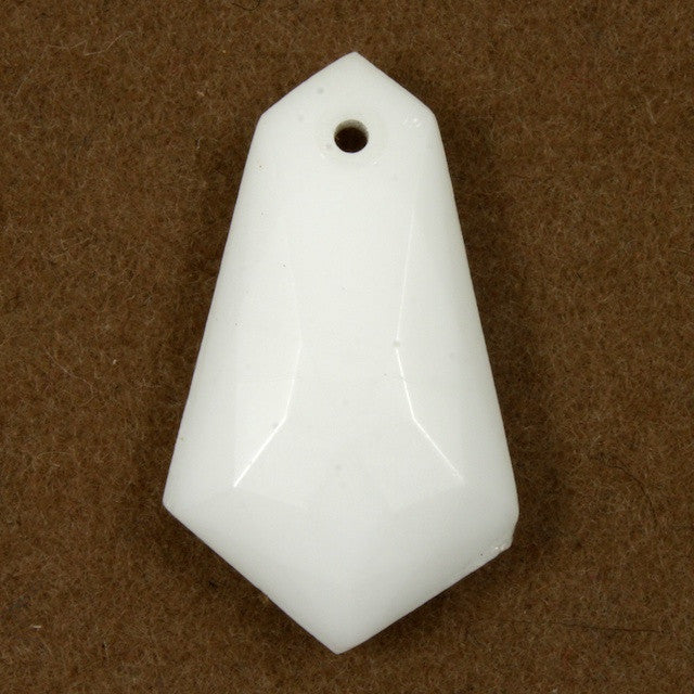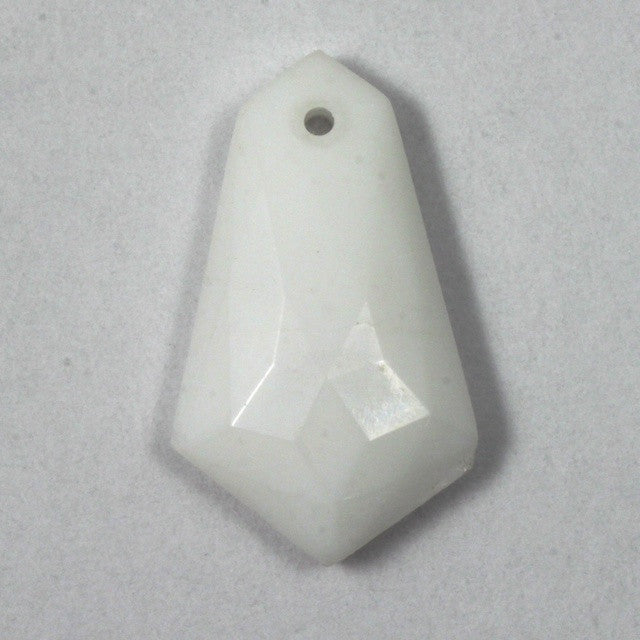 18mm x 13mm white glass pendant with facets on one side- flat on the other.