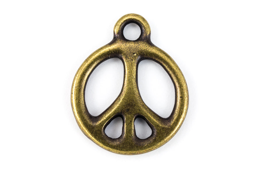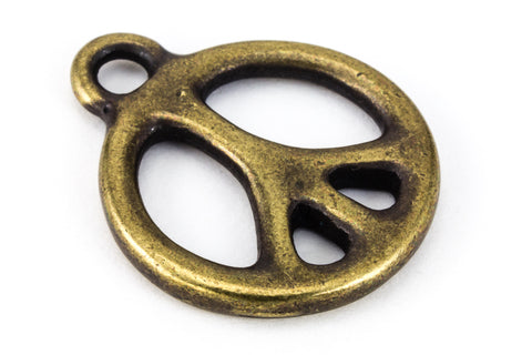 18.75mm x 15.5mm antique brass Peace symbol with loop at top.