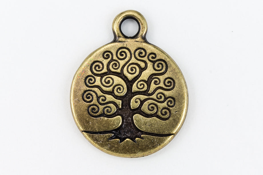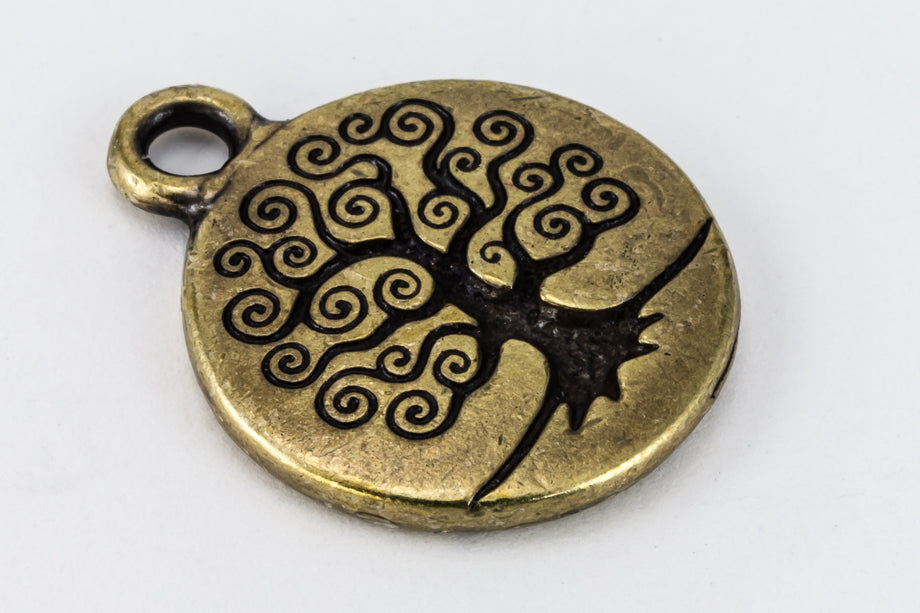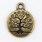 19.25mm x 15.5mm antique brass Tree of Life charm with loop at top.
