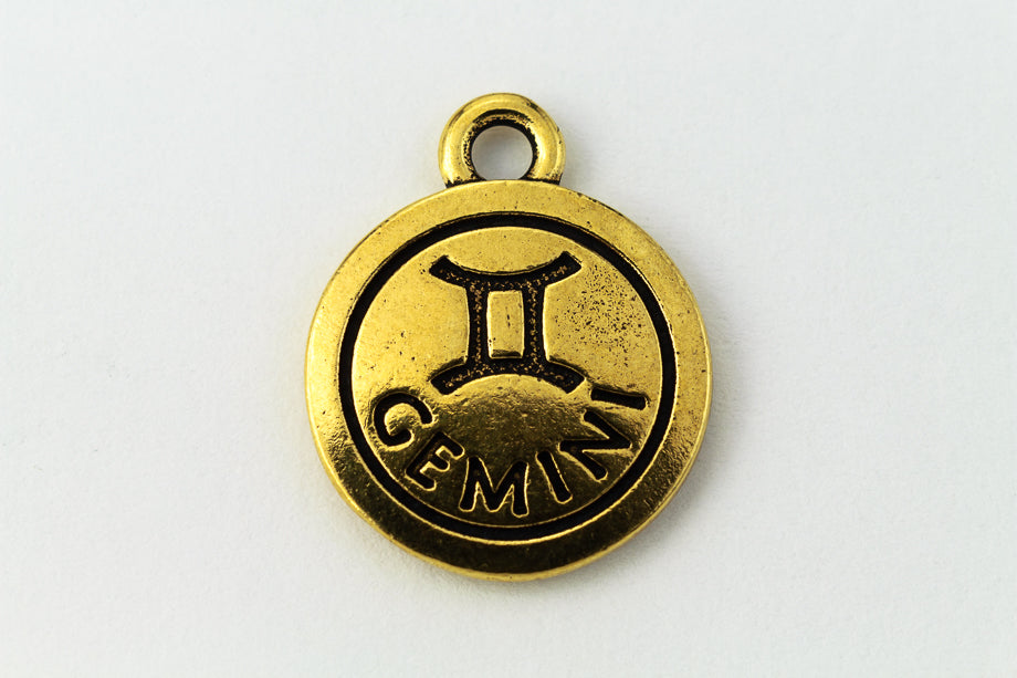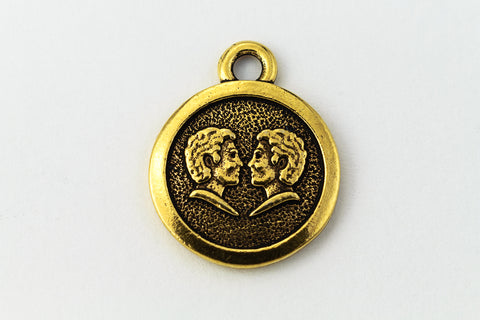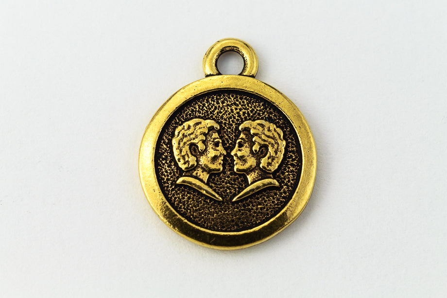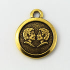18.75mm x 15.75mm antique gold Gemini charm with 2mm loop at top.