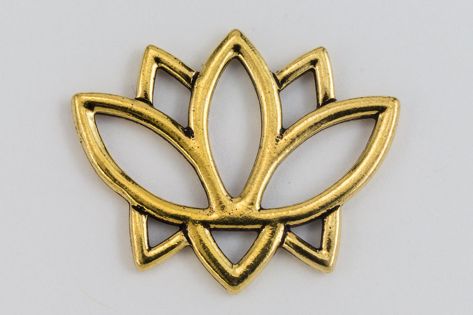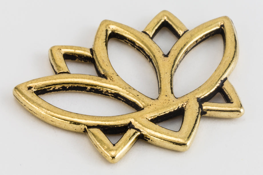19.4mm x 23.5mm antique gold link in the outline of a lotus flower.