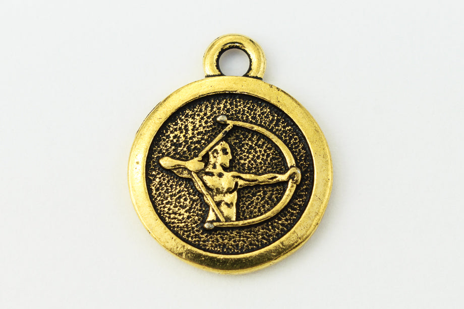 18.75mm x 15.75mm antique gold Sagittarius charm with 2mm loop at top.