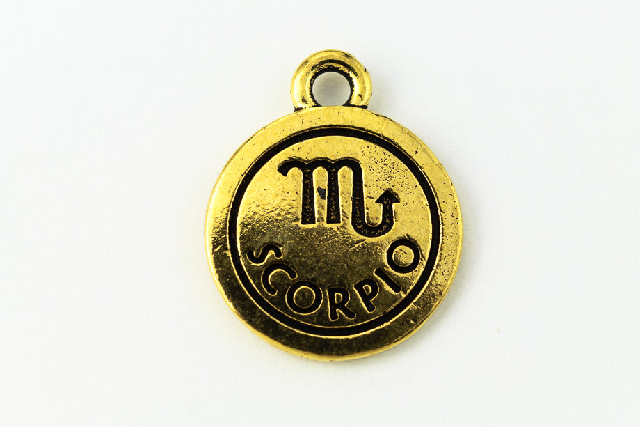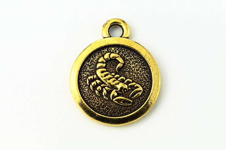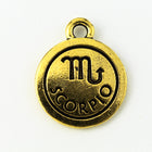 18.75mm x 15.75mm antique gold Scorpio charm with 2mm loop at top.