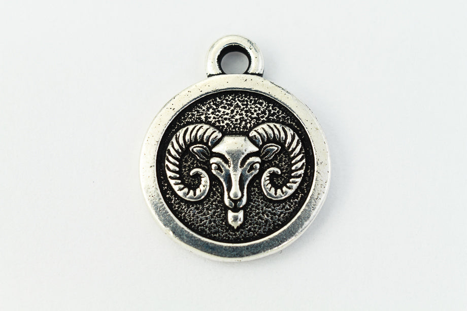 18.75mm x 15.75mm antique silver Aries charm with 2mm loop at top.