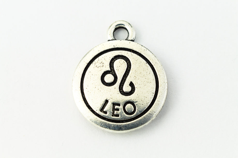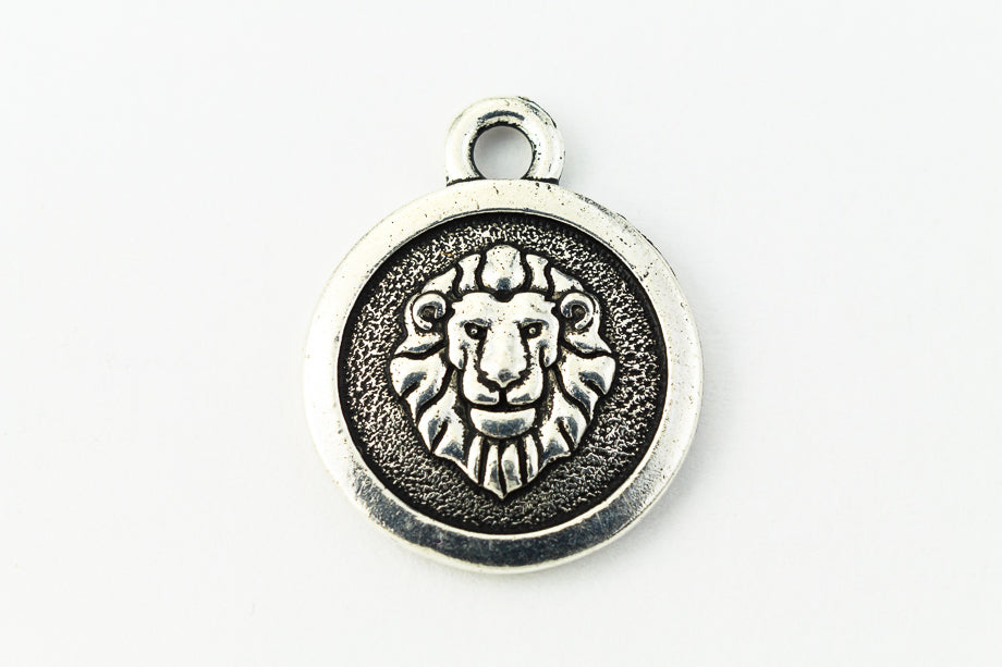 18.75mm x 15.75mm antique silver Leo charm with 2mm loop at top.