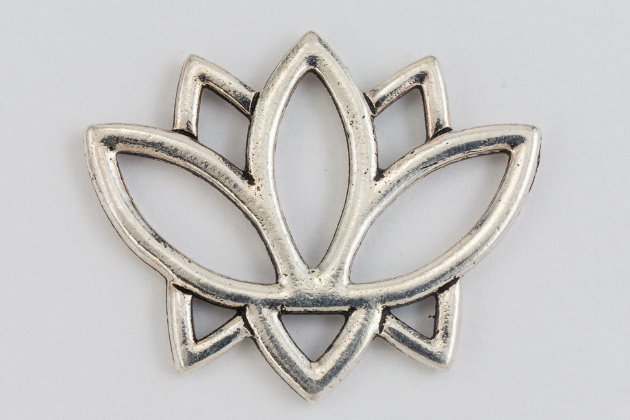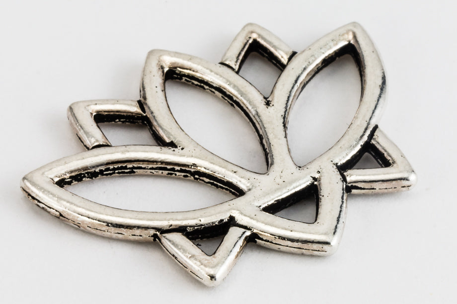 19.4mm x 23.5mm antique silver link in the outline of a lotus flower.