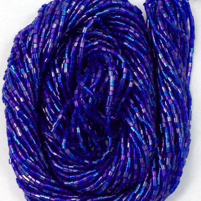 1mm x 1mm iridescent cobalt glass bead, comparable to size 20/0 seed bead.
