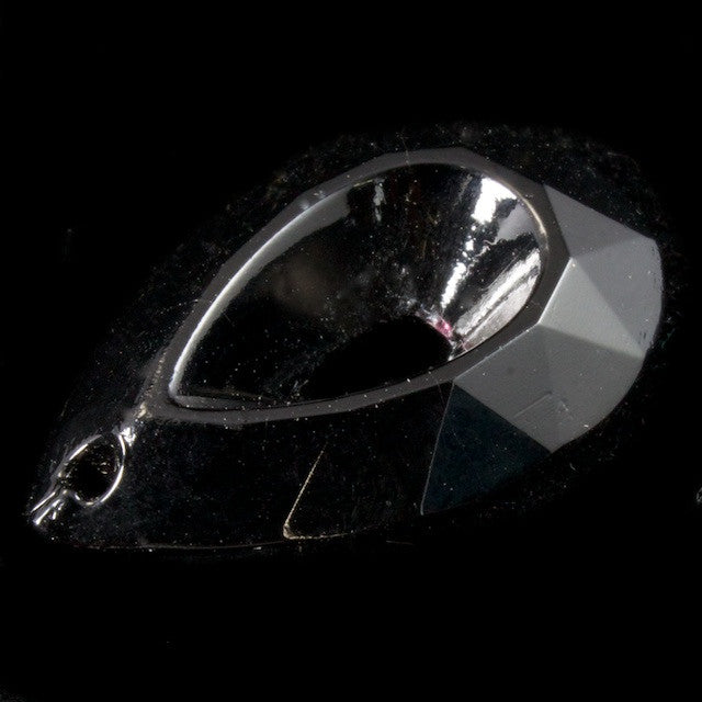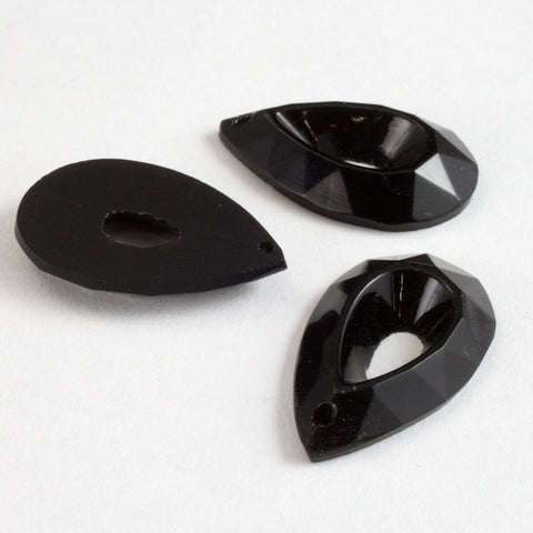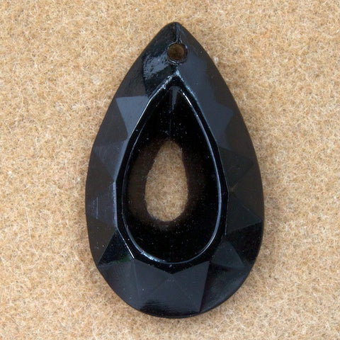 15mm x 20mm black faceted teardrop with open center and hole in top.