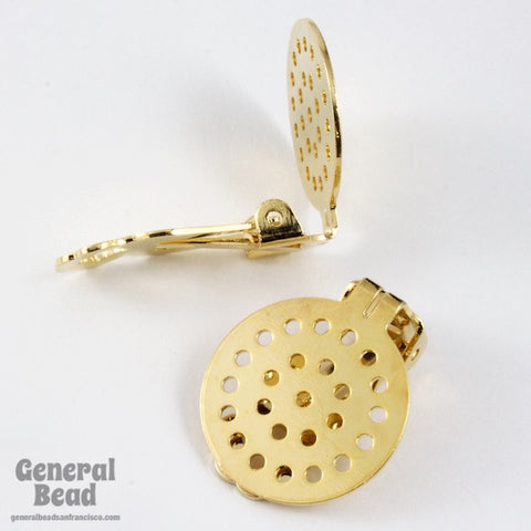 Gold tone clip-on earring with 20mm perforated pad.