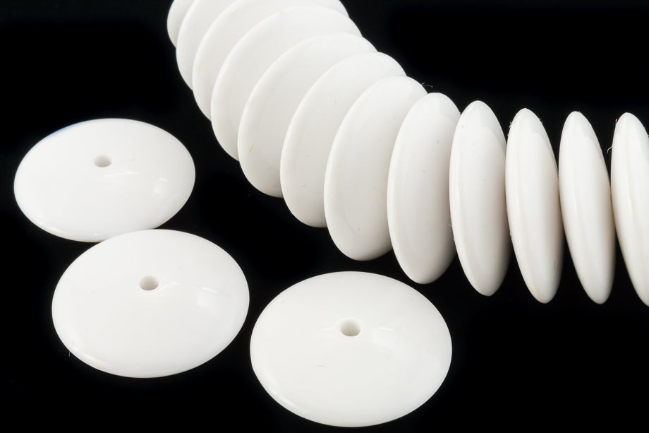 20mm white rondelle spacer bead with 1.5mm hole in center.