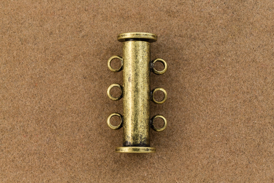 20mm x 10mm antique brass magnetic slide clasp with 3 loops on each side.