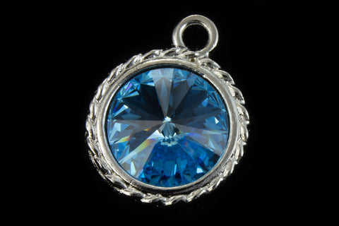 20.5mm x 16.5mm bright silver dapped cabochon setting filled by 12mm aquamarine rivoli.