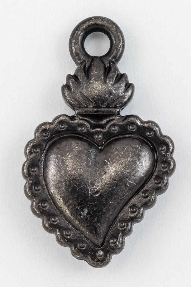 13mm x 21.5mm black Milagro Heart charm. Inner diameter of loop is 2mm.
