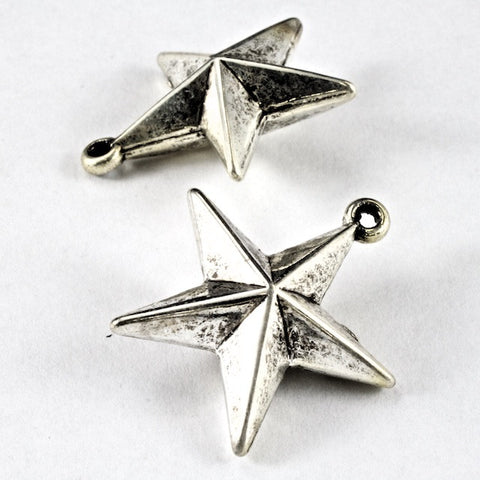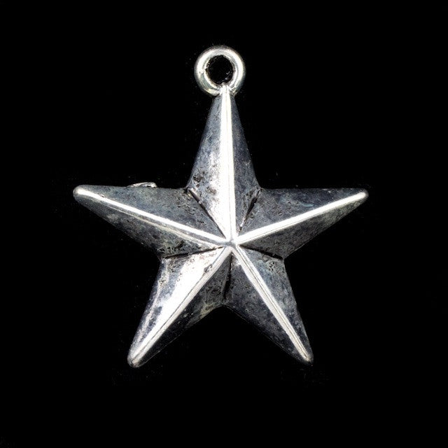 Vintage 22mm antique silver three dimensional five pointed star with 2mm loop at top.