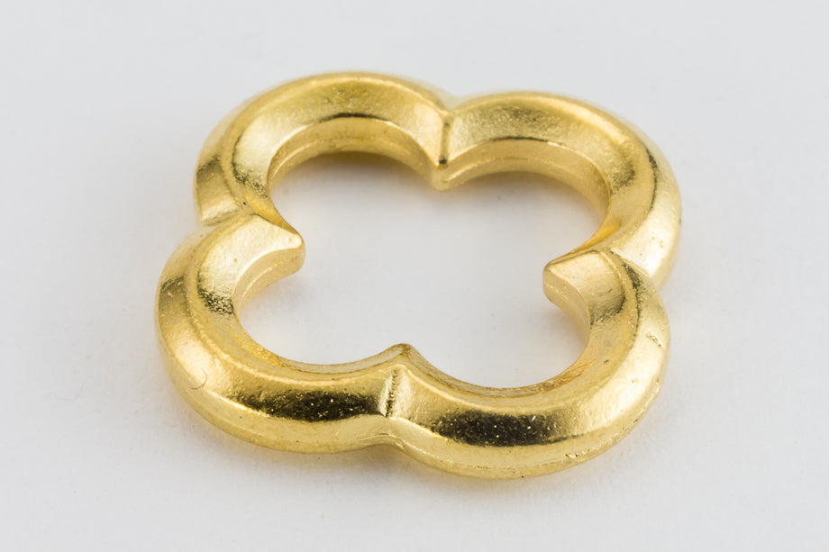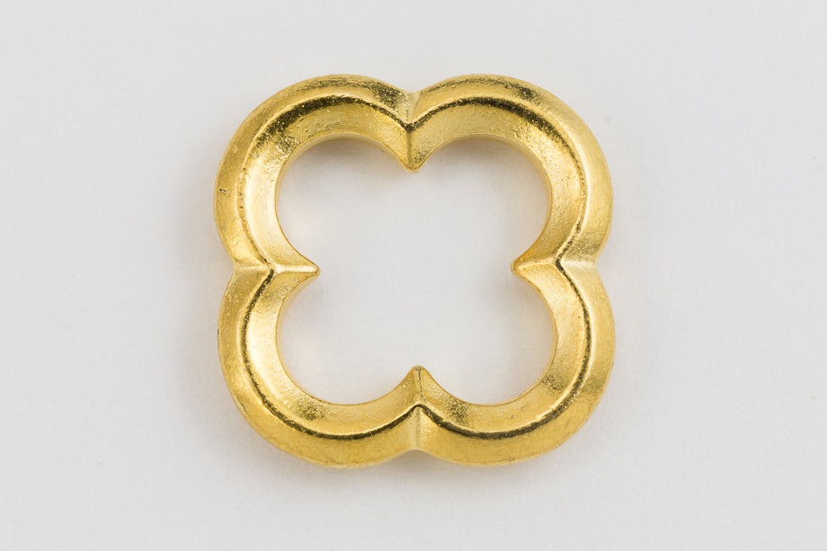21.6mm x 21.6mm bright gold open link in the shape of a quatrefoil.