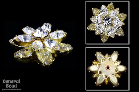 22mm multi-level 12 petal flower made of faceted crystal in raw brass.