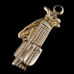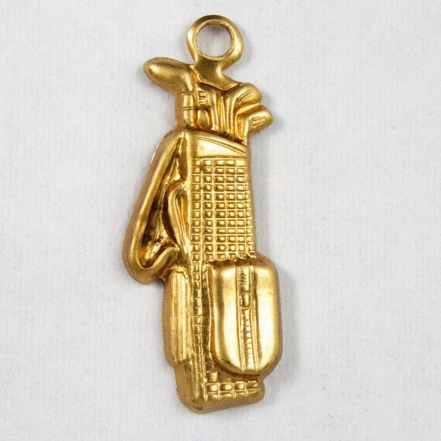 9mm x 22mm raw brass golf bag with clubs and loop at top.
