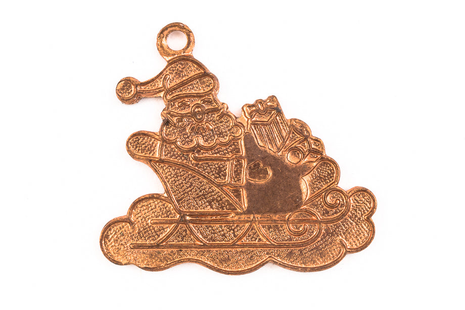 22mm x 27mm copper tone Santa figure in sleigh.