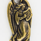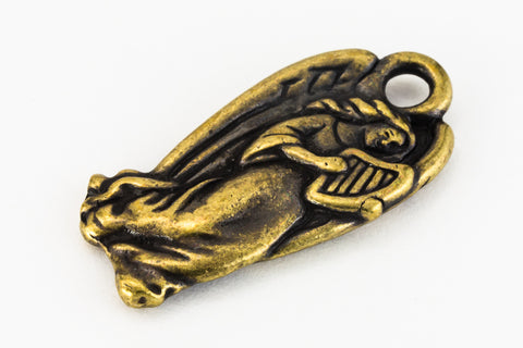 22.75mm x 11mm antique brass classic angel with harp and loop at top. Inner diameter of loop measures 2.25mm.