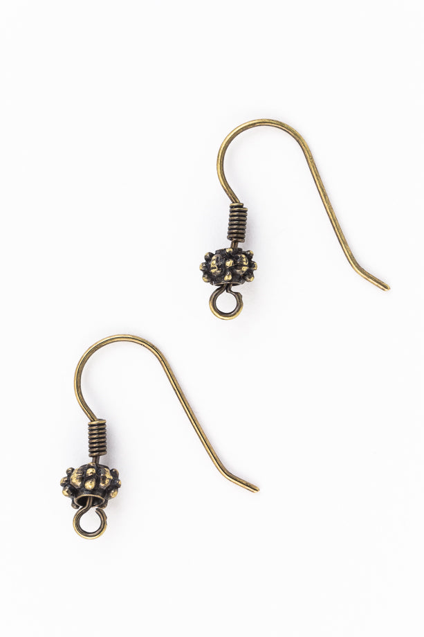 25mm antique brass 20 gauge ear wire with 2mm textured ball.