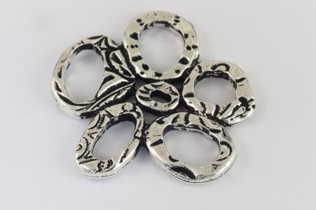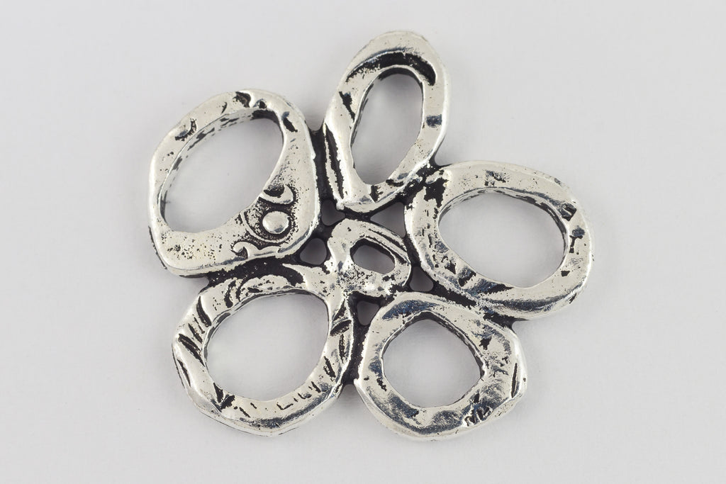 25.4mm x 24.4mm antique silver link made from five irregular rings grouped around small central ring.