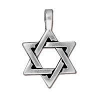 17mm x 25mm antique silver Star of David with loop at top. Loop measures 2mm.
