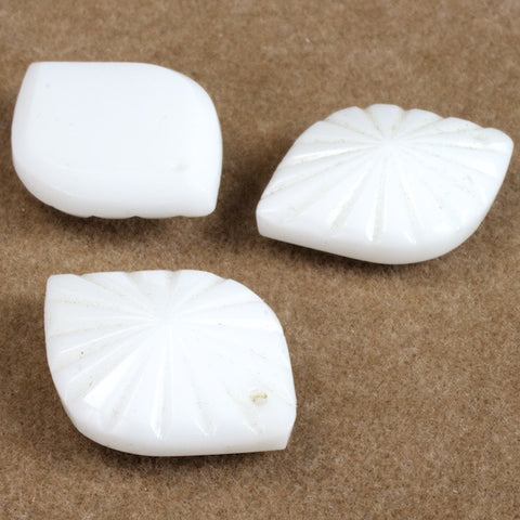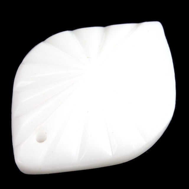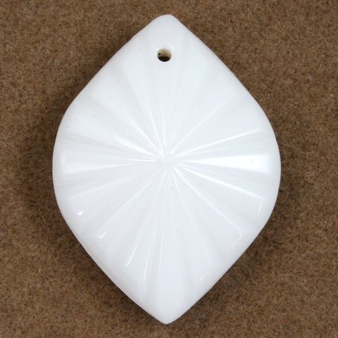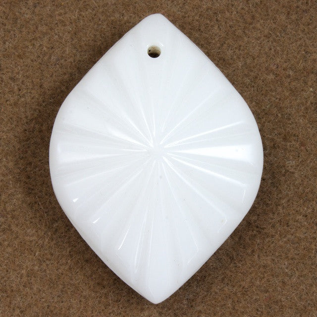 18mm x 25mm chalk white navette with starburst pattern and hole at top.